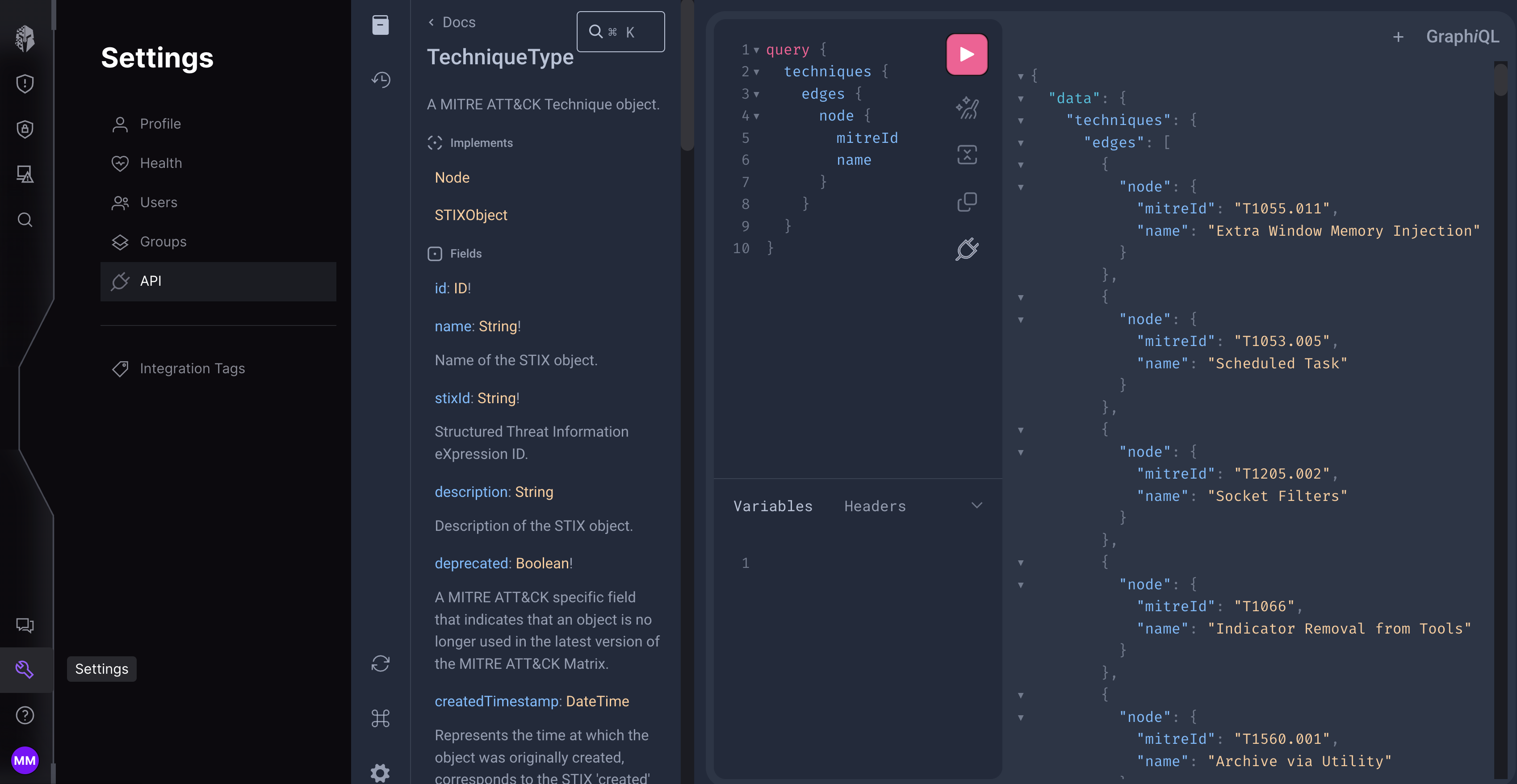 The GraphQL API provides a robust full featured API to access all data found in the platform's UI. This API regularly changes and requires user login to access. This API's documentation is available at API settings page. The GraphQL API provides a powerful tool to create complex queries to quickly access specific information.